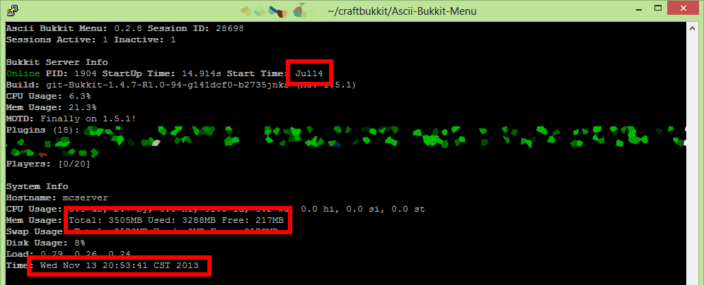 That is one mangled world save! Notice the random missing chunks that appeared as the old server deterioratied 2:44 PM 11/17/2013 Just gonna brag about my accidental uptime.
